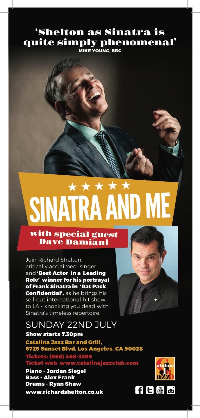 Join Richard as be brings his all new 'Sinatra and Me' show back to LA's famed Catalina Jazz Bar and Grill, Sunset Boulevard as he delves behind the blue eyes of the icon and sings the hits with style!